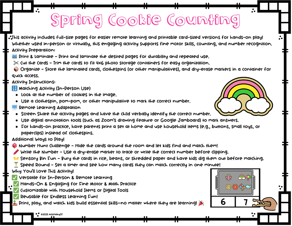 "The printables from MissHaleyOT are a game-changer! The activities are fun, engaging, and thoughtfully designed to support fine motor, sensory, and gross motor development. My students love them, and I’ve noticed real improvements in their skills. Plus, they’re easy to use at home or in the classroom. Highly recommend!"